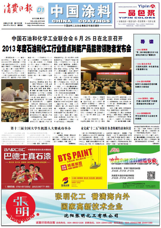 《中國涂料報》(電子版)的一切內容(包括但不限于文字、圖片、PDF、圖表、標志、標識、商標、版面設計、專欄目錄與名稱、內容分類標準以及為讀者提供的任何信息)僅供中國涂料信息網讀者閱讀、學習研究使用,未經中國涂料雜志社有限公司及/或相關權利人書面授權,任何單位及個人不得將《中國涂料報》(電子版)所登載、發布的內容用于商業性目的,包括但不限于轉載、復制、發行、制作光盤、數據庫、觸摸展示等行為方式,或將之在非本站所屬的服務器上作鏡像。否則,中國涂料雜志社有限公司將采取包括但不限于網上公示、向有關部門舉報、訴訟等一切合法手段,追究侵權者的法律責任。
